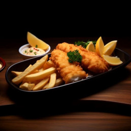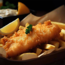 - With Fish & Chips Menu, you can indulge in the classic combination of fried fish, fries, and tangy tartare sauce along with a refreshing beverage and lemon wedge.